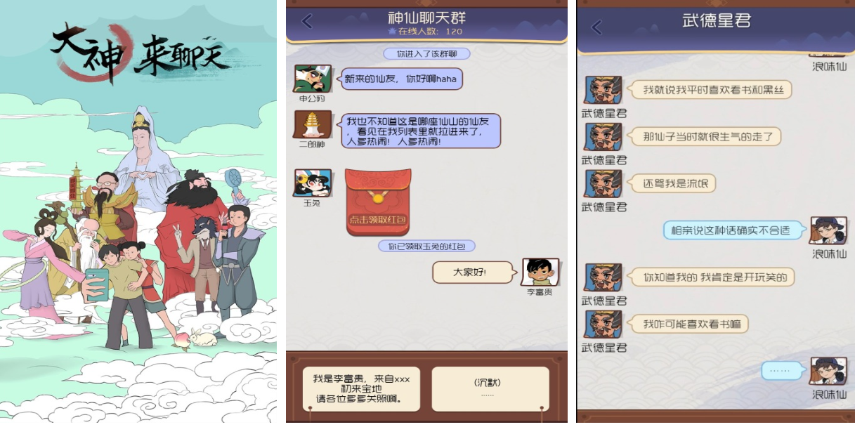 喜歡聊天的朋友可以進入大神來聊天這款A(yù)PP盡情聊天互動,這款佳作把中國的神話故事人物全都塑造出來,并拉進一個神仙的聊天群中,而你則會扮演唯一的普通人進行聊天互動,特殊的文字聊天機制令本作體驗感更為沉浸,游戲文字互動性極高給人帶來與神仙對話的機會,各路神仙匯聚一堂可以與你進行一對一聊天,真實的聊天界面和聊天的語氣更有一種代入感。