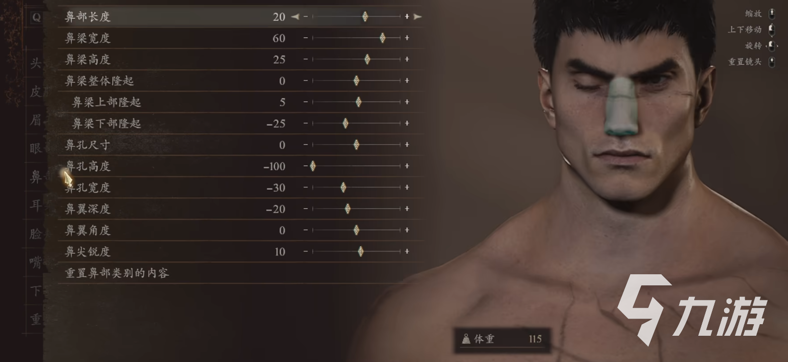 首先大家可先將他的身高調(diào)節(jié)至215CM,接著腰高則是45CM,肌肉程度則是100。還有其他部位的肌肉量,按順序輸入的話就是39、75、20、-35、0,這樣就可以塑造一個(gè)強(qiáng)壯高大的身體了,并且看上去會(huì)更加勻稱一些。鼻部的參數(shù)就是35、-26、-31、-30、鼻梁下部隆起-76、-57、-61、-83、-32、19、42,輕松塑造高挑立體的鼻梁,更符合西方人物的臉龐形象。
