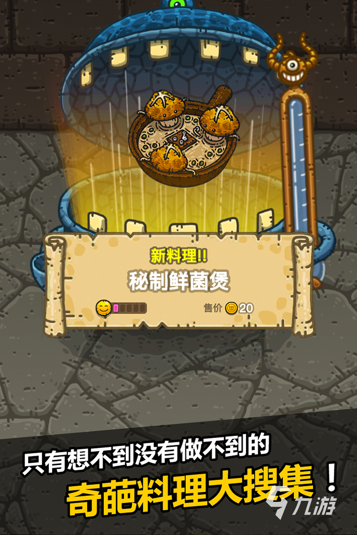 這個黑暗主題的烹飪游戲的背景還是很有趣的,在玩法上,不僅要做好自己店鋪的管理,還要自己做菜譜研究,獲取一些食材,這些菜的制作過程比較黑暗,但是味道很好,店家的生意也越來越好。