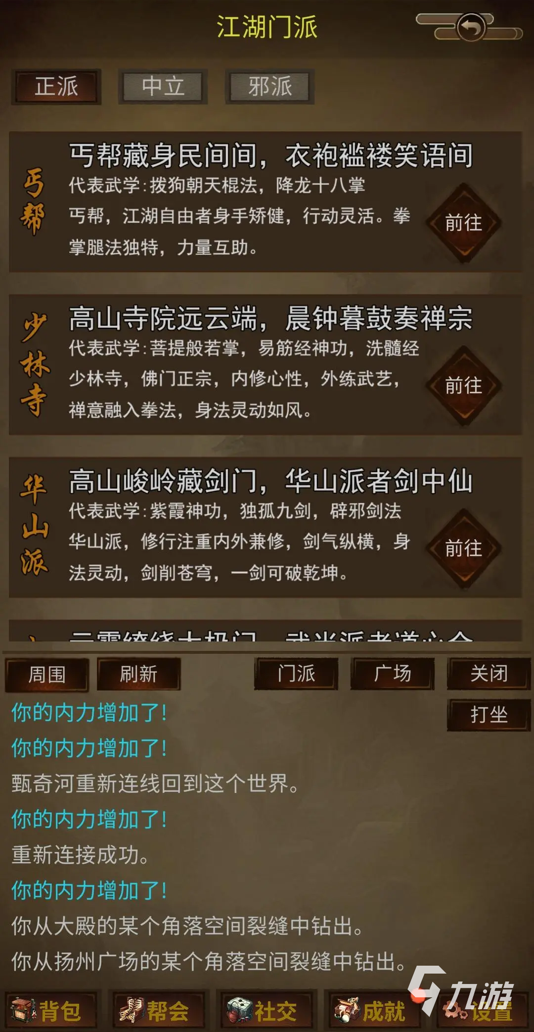 2、游戲介紹:該游戲的可玩性還是非常高的,是一個(gè)全新的MUD類型游戲,同時(shí)具有很強(qiáng)的互動(dòng)性。同時(shí)該游戲的自由度還是很高,里面有正派和邪派供大家選擇選擇,可以選擇成為正派人士,也可以選擇成為邪派人士,也可以亦正亦邪隨心所欲。