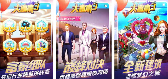 大富豪3H5手游剛開始有一座小型商業(yè)樓,可以通過招商來增加店鋪的營業(yè),市中心的商業(yè)樓可以賣奢侈品,面向高端顧客,開發(fā)區(qū)的商業(yè)樓可以開工廠、辦公樓,面向企業(yè),旅游區(qū)的商業(yè)樓可以開酒店、紀(jì)念品店面向游客,和好友互動很有意思,去好友的商業(yè)樓逛逛能拿到友情值,友情值可以換道具。