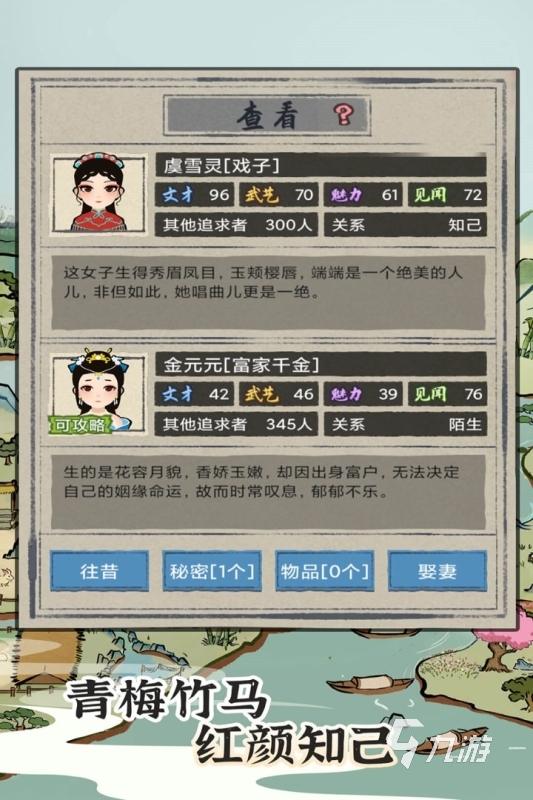 這款游戲中玩家將會穿越回古時候的江南水鄉(xiāng),領(lǐng)略南方的恬淡生活和詩情畫意。玩家在游戲中會結(jié)識不同的江南女子,也會在她們之中覓得自己的良人。