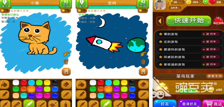 你畫我猜以創(chuàng)意繪畫和實(shí)時(shí)互動(dòng)為核心,構(gòu)建了一個(gè)具有高度社交屬性的休閑平臺(tái)。支持多人在線匹配,房間內(nèi)系統(tǒng)隨機(jī)指定一名玩家為畫師,其余為猜題者。畫師需根據(jù)系統(tǒng)給出的詞語(yǔ),在限定時(shí)間內(nèi)用繪圖工具表達(dá)出來(lái)。工具欄包含豐富的功能,如自由更換畫筆顏色、使用橡皮擦修改、填充背景等,便于創(chuàng)作清晰畫面。