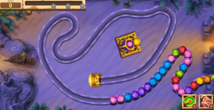 祖瑪世紀(jì)主打消除玩法,但和傳統(tǒng)的三消有很大的區(qū)別,里面會設(shè)定一個軌道,需要通過滑動屏幕,讓青蛙嘴里隨機顏色的圓球發(fā)射到對應(yīng)的位置,隨著時間的推移,軌道上的圓球會越來越多,要在軌道圓球到達(dá)終點之前,把圓球統(tǒng)統(tǒng)都消除,每次消除最少三個圓球,需要通過合理的擺放,爭取一次性的消除更多小球。