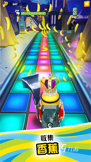 將這一風(fēng)格融入高速奔跑的節(jié)奏之中。熟悉的黃色身影穿梭在實(shí)驗(yàn)室、城市街頭和神秘基地之間,腳下的道路不斷延展,突如其來的障礙考驗(yàn)反應(yīng)極限。滑行穿越狹窄通道,騰空躍過旋轉(zhuǎn)機(jī)關(guān),靈活變向避開迎面而來的危險(xiǎn),每一個(gè)動(dòng)作都決定奔跑的距離。香蕉不僅是路上的獎(jiǎng)勵(lì),更是成長的關(guān)鍵,解鎖新角色、升級(jí)能力、觸發(fā)特殊模式,讓每一次奔跑都充滿未知驚喜。
