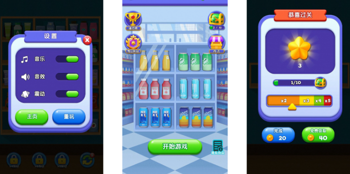 貨柜消消消的背景是倉庫,上面堆著各種顏色和形狀的貨物箱,看著就像真的在整理倉庫,玩法不是平面消除而是立體貨柜消除,得把貨柜里的貨物箱挪來挪去,有時(shí)候要旋轉(zhuǎn)貨物箱,有時(shí)候要把它移到別的層,只要三個(gè)一樣顏色或者一樣形狀的貨物箱在同一層或者同一豎列連在一起,就能消除掉,消除后上面的貨物箱會(huì)往下落把空位補(bǔ)上。