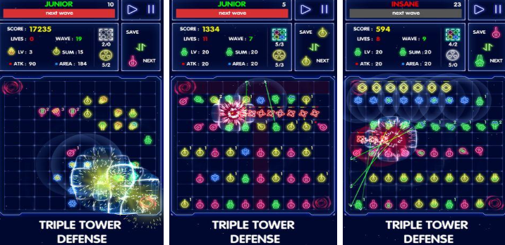 三消塔防把消除和塔防結(jié)合在一起,畫面是奇幻風(fēng)格,有會(huì)放魔法的防御塔還有各種各樣的怪物,玩的時(shí)候分兩部分,一部分是消除蓄力另一部分是塔防戰(zhàn)斗,消除的時(shí)候屏幕里有不同顏色的能量塊,交換相鄰的能量塊,三個(gè)一樣的連在一起就能消除,不同顏色的能量塊對(duì)應(yīng)不同的防御塔,消除能量塊能攢能量,有了能量就能召喚防御塔,或者給已經(jīng)有的防御塔升級(jí)。