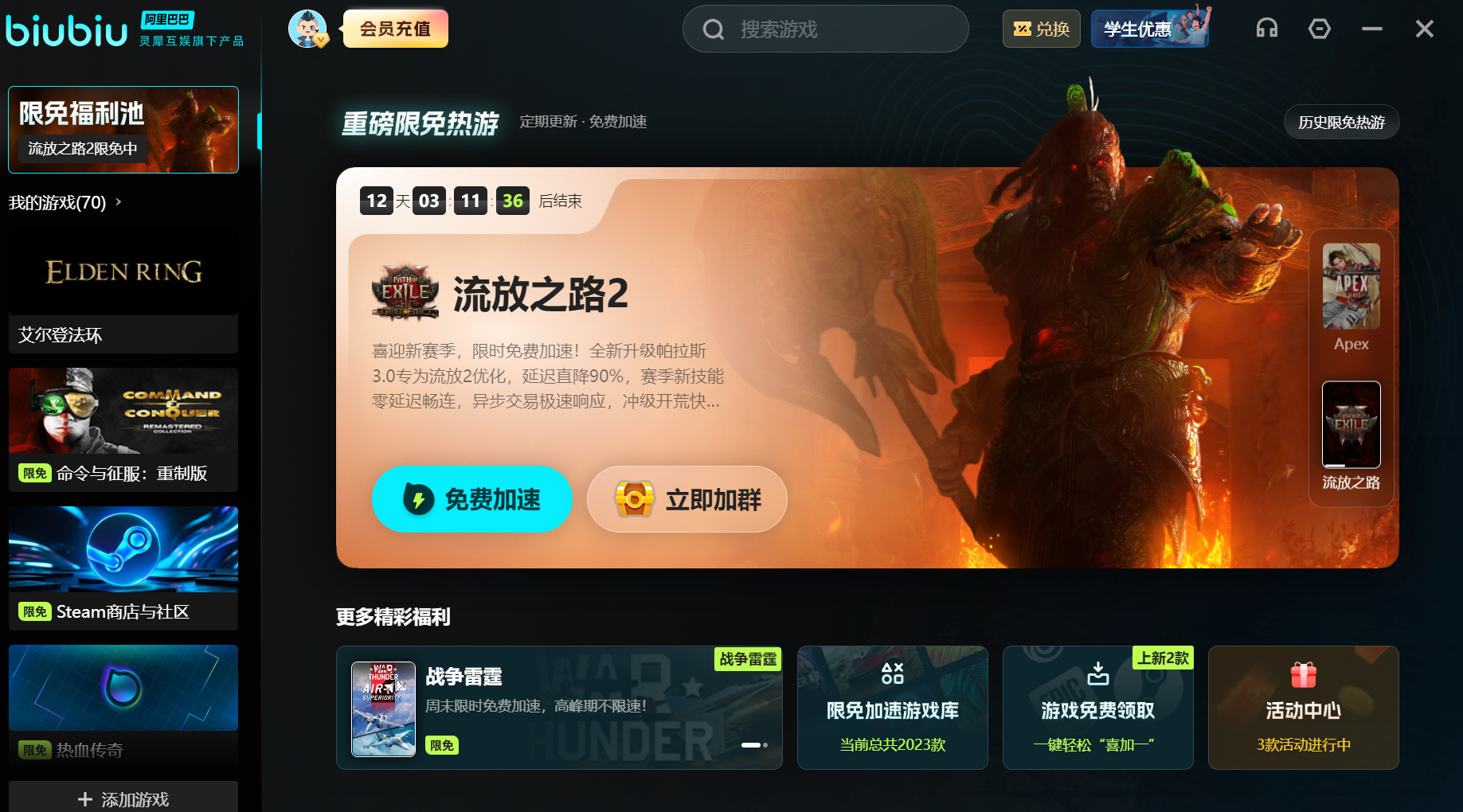 為幫助玩家體驗(yàn)到更流暢的聯(lián)機(jī)效果,biubiu加速器特別推出福利活動(dòng)。新注冊(cè)用戶立即獲贈(zèng)24小時(shí)免費(fèi)加速體驗(yàn),零門(mén)檻上手;同時(shí),所有人只需在客戶端首頁(yè)【兌換】界面輸入【biubiu不卡頓】,再送你三天(72小時(shí))的免費(fèi)加速體驗(yàn)。這些時(shí)長(zhǎng)不僅能應(yīng)用于《英雄聯(lián)盟》《絕地求生》《無(wú)畏契約》等熱門(mén)網(wǎng)游,也同樣支持MMO和FPS大作。通過(guò)福利體驗(yàn),穩(wěn)定的網(wǎng)絡(luò)讓你立即感受到流暢體驗(yàn),關(guān)鍵戰(zhàn)斗中也能避免因延遲而陷入被動(dòng)。