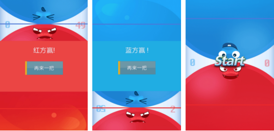 不需要聯(lián)網(wǎng),可在同一個屏幕上輕松暢玩,開局后紅藍(lán)方會處于屏幕的正中央,主要的核心就是通過逐漸點擊屏幕的方式,讓自己的顏色在屏幕上占據(jù)更多的面積,就算輕松獲勝,其實整體的游戲玩法特別簡單,但是卻比較鍛煉大家的手速,必須瘋狂點擊屏幕,輕松挑戰(zhàn),一方獲勝之后,屏幕上就會看到紅方贏或藍(lán)方贏。