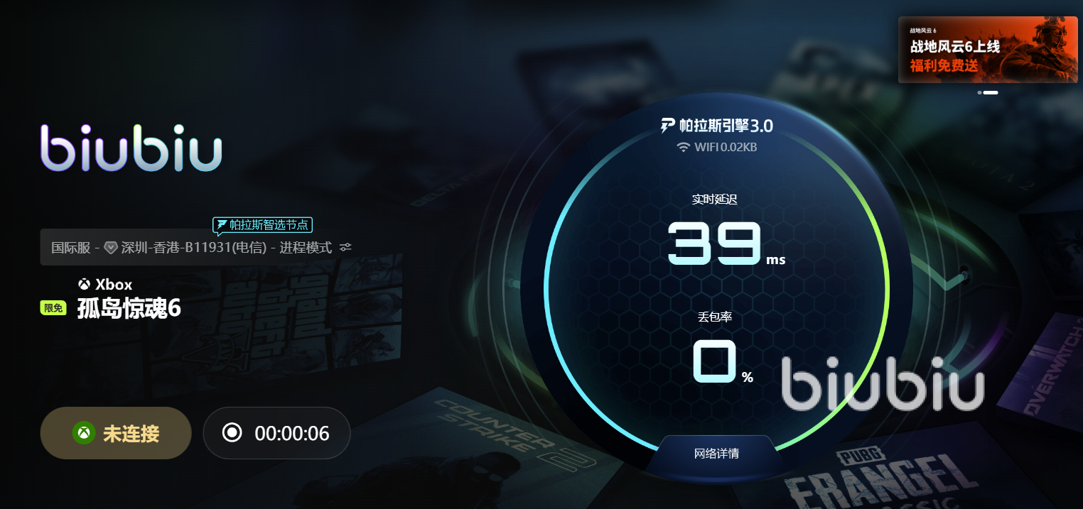 就在前不久biubiu這款加速工具剛剛完成了重量級版本的升級,由biubiu產(chǎn)品體驗(yàn)官XDD聯(lián)合調(diào)校優(yōu)化后,成功的引入了全新的帕拉斯引擎3.0。從而在數(shù)據(jù)調(diào)度、抗延遲和連接穩(wěn)定性方面實(shí)現(xiàn)全面進(jìn)化,能夠更精準(zhǔn)地識別游戲流量特征,動態(tài)調(diào)整網(wǎng)絡(luò)資源分配,進(jìn)一步降低ping值波動,有效緩解游戲中常見的掉幀、畫面撕裂和操作延遲問題,讓大家在熱帶雨林、城市巷戰(zhàn)或空中突襲中都能保持流暢操作,真正沉浸于革命戰(zhàn)場的緊張節(jié)奏之中。