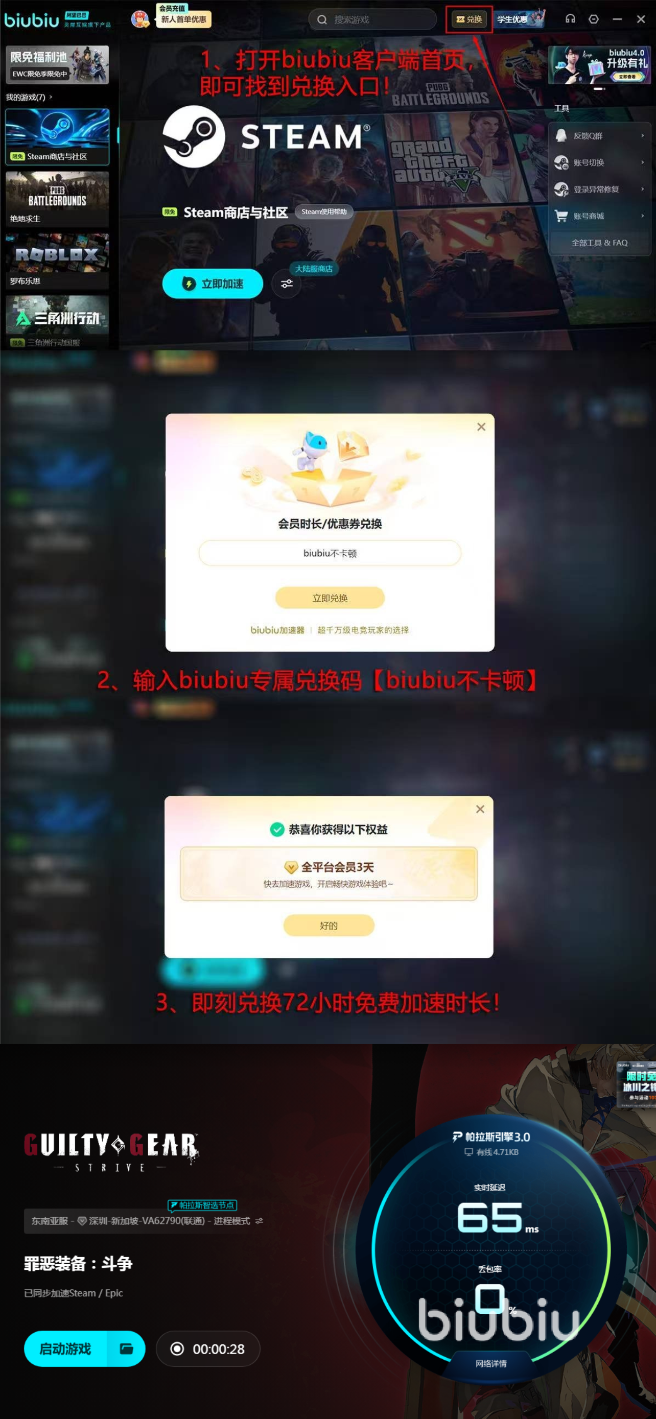 推薦使用biubiu,新人注冊(cè)立刻就能得到平臺(tái)贈(zèng)送的24h提速?lài)L試機(jī)會(huì),同時(shí)平臺(tái)每個(gè)用戶(hù)還可以領(lǐng)取三天體驗(yàn)時(shí)長(zhǎng),但是需要大家自己在提速頁(yè)面的左上角輸入【biubiu不卡頓】。最近該平臺(tái)還進(jìn)行了新的升級(jí),帕拉斯引擎3.0已經(jīng)出現(xiàn), 該技術(shù)得到了冠軍選手Aixleft的認(rèn)證,質(zhì)量可以得到保障,小伙伴們可以輕松擁有專(zhuān)業(yè)級(jí)比賽的體驗(yàn)環(huán)境。