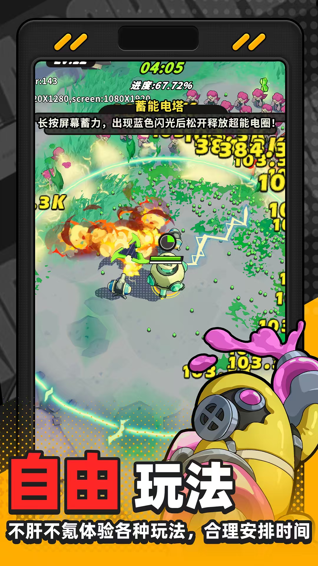 游戲為玩家塑造的是一個擁有超多風格的高質量3d戰(zhàn)場,例如城市廢墟、極寒實驗區(qū)等,在這里都會出現(xiàn)。技能采用全程高能演出的形式,配合上成群出現(xiàn)的怪物浪潮和全屏大招,打起來非常解壓爽快。游戲中大家可以使用的角色就是庫魯,每個庫魯都擁有自身的獨特技能和不同的戰(zhàn)斗風格,有些擅長的是群體aoe轟炸傷害,有些則擅長靈活爆發(fā)收割敵人,還有一些是屬于進行控制或者是回血的輔助類型。合理進行庫魯?shù)拇钆洌攀菓?zhàn)斗獲勝的保障,要根據不同對局選擇正確的庫魯,只要能找對節(jié)奏,就能夠大幅度提高清怪的效率。
