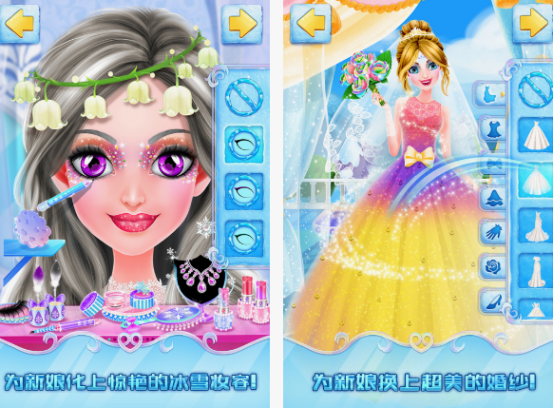 同樣也是為公主舉行婚禮的,里面的冰雪王國世界,也有著非常唯美的設(shè)計(jì)風(fēng)格。在婚禮到來之前,必須要給新娘子打扮漂亮的冰雪妝容。涵蓋了女性化妝時(shí)的各種化妝品以及工具,再加上穿著漂亮的婚紗與王子,你就可在婚禮當(dāng)中舉行浪漫的儀式。也屬于玩法比較休閑又簡單的,你需要做的就是在這里面為婚禮,做各種各樣的準(zhǔn)備。