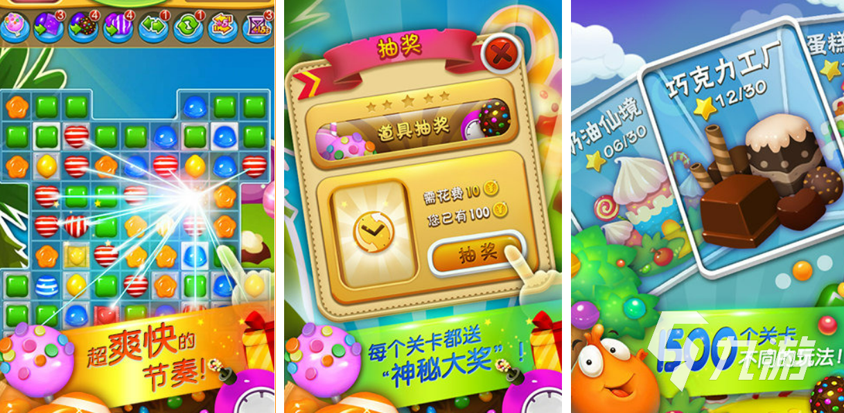 《消滅糖果》也是有大量糖果、美食元素的消除手游,游戲比較好玩,畫(huà)面制作的也很清新,又好玩又解壓,還有好聽(tīng)的音樂(lè),玩法也十分的豐富,玩家要在很多的水果、糖果中找到三個(gè)一樣的連接起來(lái),消除掉之后就會(huì)獲得一些分?jǐn)?shù),當(dāng)分?jǐn)?shù)達(dá)到了通關(guān)的標(biāo)準(zhǔn)就過(guò)關(guān)了。