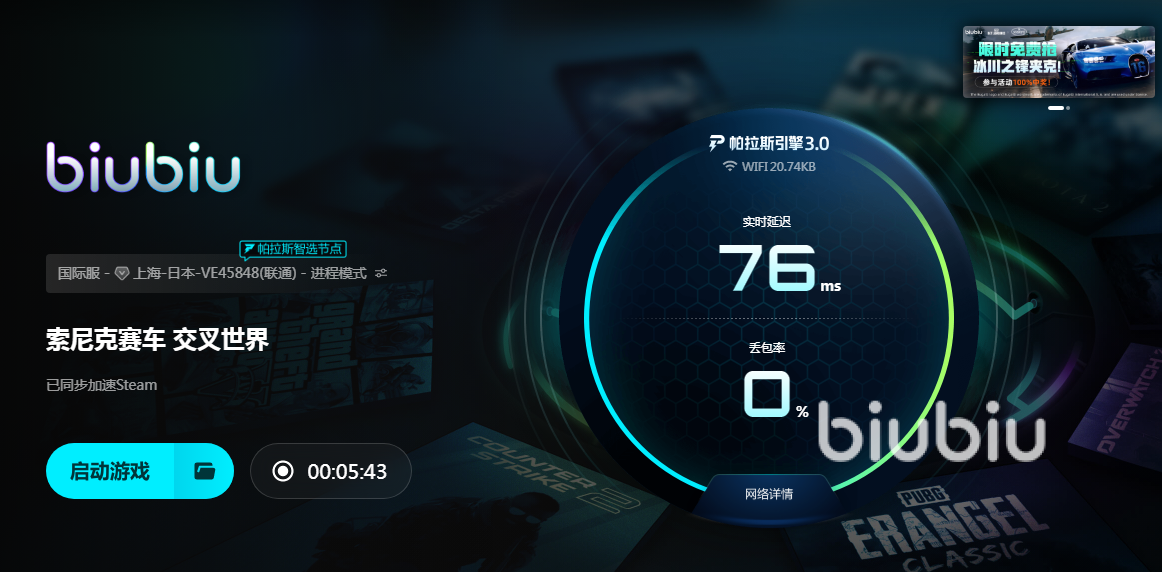 索尼克賽車交叉世界給大家?guī)?lái)的是跨次元競(jìng)速體驗(yàn),通過(guò)旅行環(huán),連接多個(gè)多元宇宙賽道,每局比賽都會(huì)穿越索尼克世界和其聯(lián)動(dòng)作品場(chǎng)景。擁有24個(gè)主賽道和15個(gè)異世界。給玩家?guī)?lái)了顛覆性的視覺沖擊和玩法。游戲采用的是動(dòng)態(tài)賽道機(jī)制,賽道會(huì)通過(guò)次元突變地形,還加入了重力反轉(zhuǎn)等元素,需要玩家實(shí)時(shí)調(diào)整駕駛策略。所以這款游戲?qū)τ诰W(wǎng)絡(luò)的要求非常高,再加上本身是設(shè)立在國(guó)際服的服務(wù)器,對(duì)于國(guó)服玩家來(lái)說(shuō),加速器絕對(duì)是不可缺少的工具,小編今天推薦的優(yōu)質(zhì)加速器是biubiu。