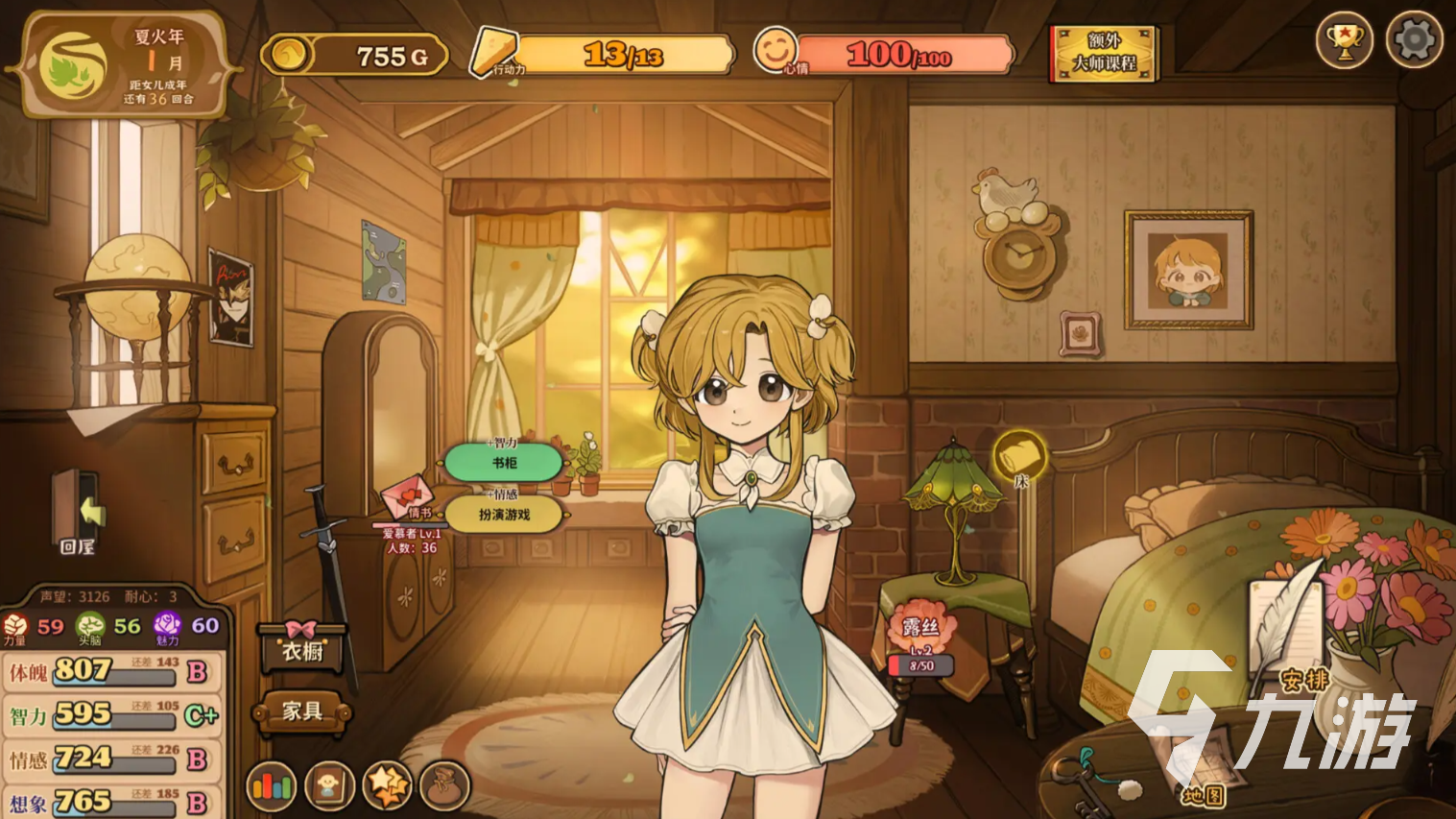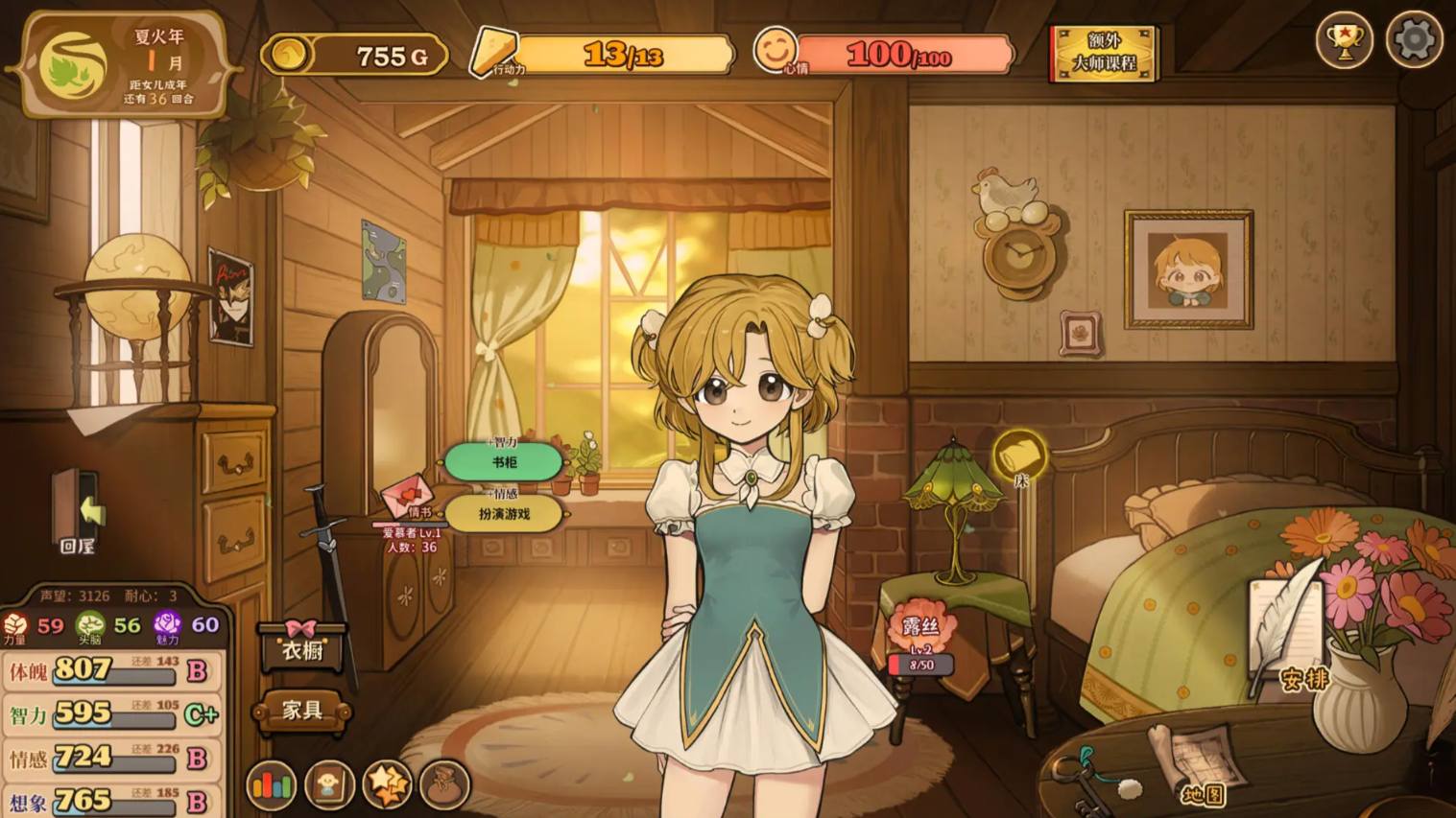 游戲?yàn)榕畠涸O(shè)定了豐富多樣的養(yǎng)成路線,大家可以通過選擇不同的日?;顒雍驼n程,來提升她的力量、魅力、體質(zhì)等不同屬性,拓展社交圈參與節(jié)日慶典,讓女兒成為榮耀的騎士,或者是識淵博的大學(xué)者等等,根據(jù)不同的目標(biāo),制定出個性化的成長計劃。
