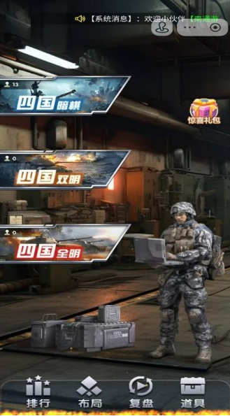 它主打暗騎的玩法,棋背全部朝上擺,雙方都需要靠試探或者是推理來猜對方的兵力,就像玩?zhèn)商接螒蛱厣δ芎軐嵱?,語音連接可以實時的去喊戰(zhàn)術,隊友配合也會變得更加順利,復盤功能回。看每一步學學,自己哪步走得好,哪步需要改進,軍棋想放哪就放哪,自由布局。工兵可以去挖雷或者是炸彈炸軍旗規(guī)則和以前一樣。支持多人一起玩,策略性十足。