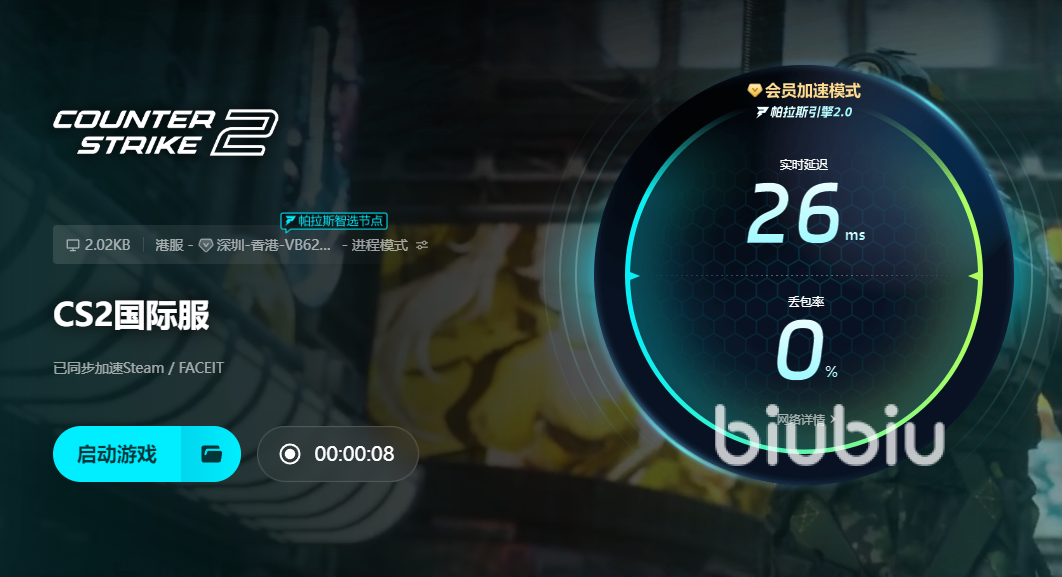 玩cs2閃退怎么辦?在游玩《CS2》(即《反恐精英2》)的過程中,有些玩家會遇到頻繁閃退的問題。這類情況時常發(fā)生在剛打開游戲、進行匹配加載地圖,甚至是在對戰(zhàn)途中閃退回桌面,不僅影響競技節(jié)奏,更可能直接導致段位下降或游戲懲罰。面對這種情況,許多玩家第一時間想到的是系統(tǒng)或硬件問題,然而實際原因中,網(wǎng)絡不穩(wěn)定同樣是導致《CS2》閃退的重要因素之一。尤其是在游戲過程中需要連接官方服務器或進行實時數(shù)據(jù)交換時,若當前的網(wǎng)絡環(huán)境存在延遲、丟包,系統(tǒng)極易出現(xiàn)崩潰或強制退出。因此,解決《CS2》閃退的關鍵之一就在于改善網(wǎng)絡環(huán)境,而biubiu加速器正是為此提供優(yōu)化支持的實用工具。