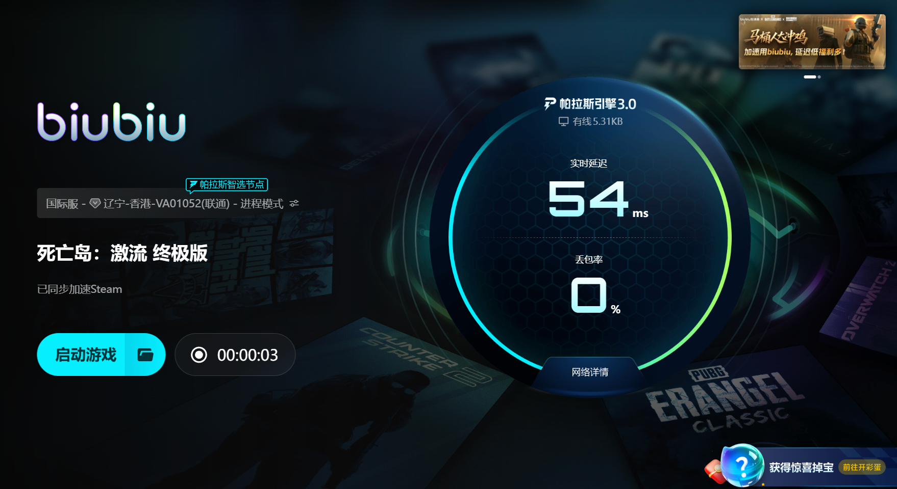 打開(kāi)biubiu加速器,搜索死亡島激流終極版,選擇游戲圖標(biāo)并點(diǎn)擊立即加速。幾秒鐘后系統(tǒng)會(huì)顯示網(wǎng)絡(luò)優(yōu)化完成,你無(wú)需調(diào)整其他設(shè)置,直接啟動(dòng)游戲。進(jìn)入戰(zhàn)斗、加載地圖、觸發(fā)劇情時(shí),你會(huì)明顯感受到——畫(huà)面不再突然黑屏,節(jié)奏不再被強(qiáng)行打斷。