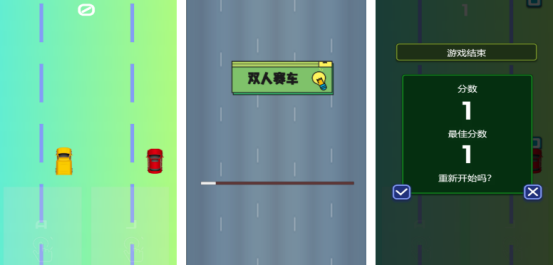 兩輛玩具小車(chē),一切出現(xiàn)在一條賽道上,開(kāi)局后,兩位玩家各選擇一種喜歡的車(chē)輛,利用手指快速點(diǎn)擊屏幕,即可加速車(chē)輛,行駛的距離越遠(yuǎn),獲得的分?jǐn)?shù)就會(huì)越高,雖然這條賽道特別寬,但是前方也會(huì)隨機(jī)出現(xiàn)大量的障礙物,在及時(shí)躲避障礙物的同時(shí),還不能和其他車(chē)子發(fā)生碰撞,否則就會(huì)被扣分。