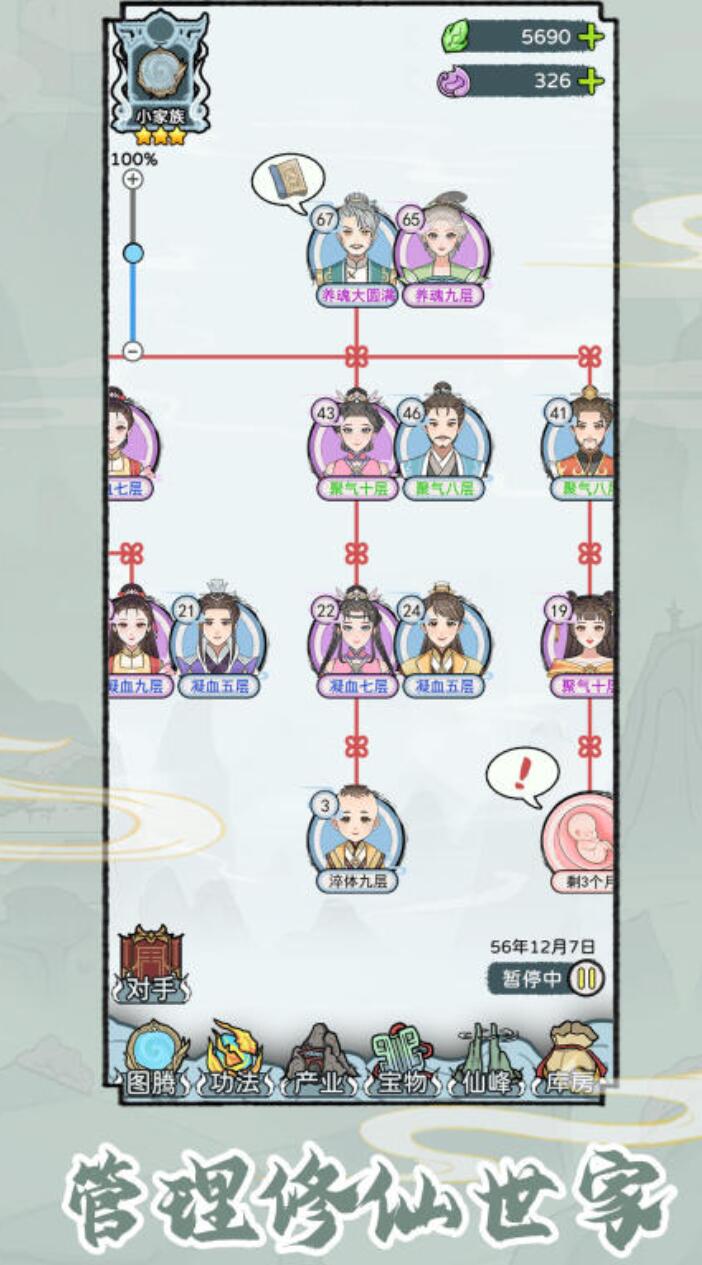 輪回轉世為核心玩法為核心,為玩家?guī)砣碌男尴审w驗。在本作中每一局都是從零開始養(yǎng)成家族,轉世弟子可以保留部分前世修為的特性,形成了非常特殊的成長玩法,可以說在資源有限的情況下,我們必須要在短期收益與長遠發(fā)展做出選擇,有很強的策略元素,每局時間有限,一方面玩法輕松,另一方面也增加了策略難度。