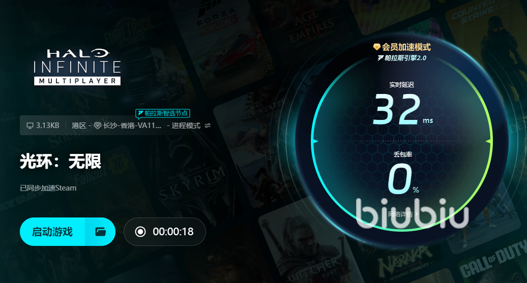 以上,就是小編整理的光環(huán)加速器選哪個好內(nèi)容,并且給大家分享了選配加速器的指標(biāo)參考標(biāo)準(zhǔn),希望能幫到各位正在為掉幀、掉線煩惱的玩家。最后,提醒各位光環(huán)無限的玩家,如果想要游戲獲得biubiu加速效果,需要先啟動biubiu加速器,然后通過加速器啟動游戲才可以的哦!