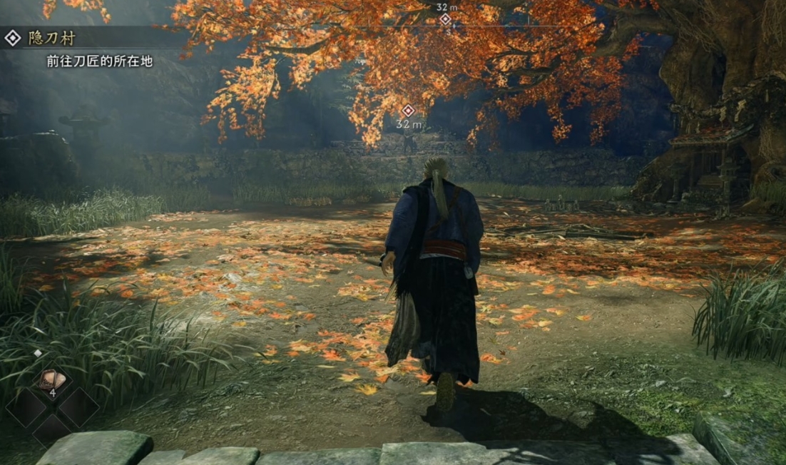 等待玩家穿越竹林,這個(gè)時(shí)候就能夠看到旗幟的位置,在這里可恢復(fù)狀態(tài),同時(shí)之前擊敗的敵人也會(huì)成功的復(fù)活,玩家從旗幟處進(jìn)入大門(mén)后,就能與CG動(dòng)畫(huà)中出現(xiàn)的師傅進(jìn)行對(duì)話(huà)了,而她也會(huì)指導(dǎo)玩家和隱刀貳進(jìn)行對(duì)戰(zhàn)的練習(xí)。