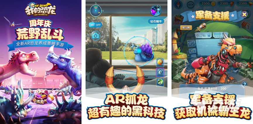 這是一款在恐龍世界,使用ar玩法,歡迎來到侏羅紀(jì)的世界。在這里居住著上百種恐龍,玩家可以打開攝像頭進(jìn)行捕捉恐龍,也能在虛擬的地圖上搭建房屋,和你的恐龍一起生活,不斷地訓(xùn)練他們,為了更加強(qiáng)大抵御其他陣營恐龍的進(jìn)攻。當(dāng)然,如果你有自信,你也可以主動向其他人玩家發(fā)起對決申請,搶奪他的財物歸為己有。