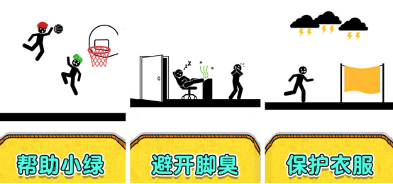 腦洞大開的關(guān)卡設(shè)計,卻在開局后看到一個個簡約的火柴人角色,整體的要求特別簡單,只要手指滑動屏幕按照具體的要求完成挑戰(zhàn)即可,比如有的關(guān)卡中會呈現(xiàn)出兩個可愛的小火柴人。其中一方會手持籃球,而另一方頭上有點綠,具體的要求就是通過劃線的方式,幫助小綠阻止對方的快速投籃,此時需在籃球框上畫出圓圈。