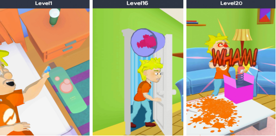 人們在生活中喜歡用惡作劇的方式,和其他好朋友一起開玩笑,你扮演的是特別調(diào)皮的黃頭發(fā)人物角色,自己的內(nèi)心充滿著各種小惡魔,創(chuàng)意十足,比如在門上會放著曾有物品的桶,而當(dāng)其他朋友推開門之后,桶會直接扣在了對方的頭上,此時的你會哈哈大笑,而對方卻特別無奈。游戲中涵蓋的惡作劇方式特別多,你要按照具體的要求完成挑戰(zhàn)。