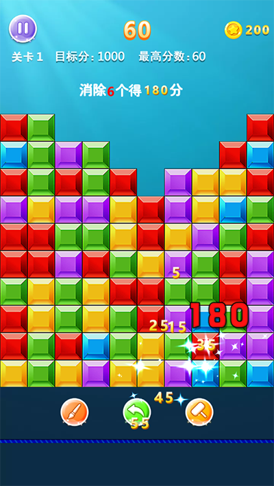 數(shù)字均被這些五顏六色的方塊包圍著它們,由于位置的排列不同,需要玩家手動(dòng)進(jìn)行方塊的位置變化。不僅僅要找到相同顏色的方塊,還要找到相同方塊且數(shù)字都一樣的方塊,只有這兩個(gè)要求,同時(shí)滿足時(shí)才能夠達(dá)到消除的目的。操作上只需要進(jìn)行方塊之間的連接就可以了,但是對(duì)于游戲的規(guī)則在開(kāi)啟闖關(guān)之前還是要先了解一下,游戲的節(jié)奏是很快的,每一次在消除時(shí)都要準(zhǔn)確無(wú)誤,否則會(huì)影響后續(xù)的消除任務(wù)完成效果。