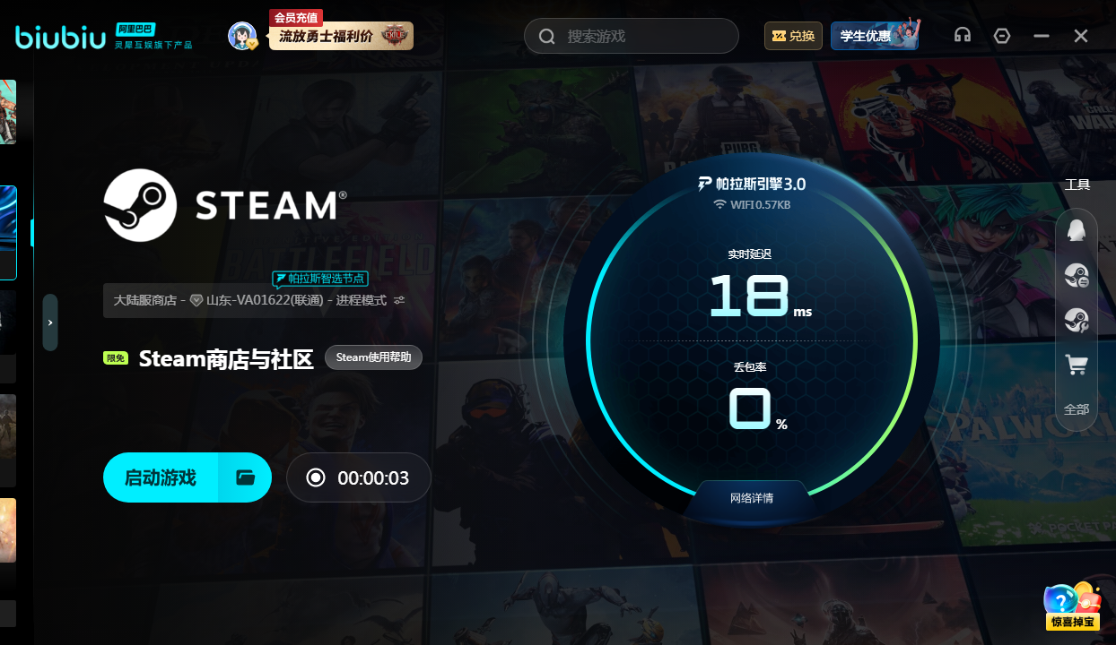 現(xiàn)在迎來了重磅升級(jí),不僅推出功能強(qiáng)大的版本還會(huì)和冠軍選手Aixleft合力打造,結(jié)合職業(yè)選手對(duì)網(wǎng)絡(luò)穩(wěn)定的要求,針對(duì)加速性能去完成優(yōu)化,讓普通的玩家可以享受接近職業(yè)級(jí)別的網(wǎng)絡(luò)體驗(yàn)。更值得關(guān)注的是引入帕拉斯引擎3.0進(jìn)一步的提升加速的效率,哪怕是在網(wǎng)絡(luò)環(huán)境較差的情況下,也可以保證穩(wěn)定的加速效果。有興趣就趕緊去領(lǐng)取免費(fèi)加速時(shí)長(zhǎng)吧,現(xiàn)在新用戶點(diǎn)擊以上的鏈接,在下載之后首次登錄,就有24小時(shí)免費(fèi)加速時(shí)長(zhǎng)。所有的用戶都可以在加速器的頁(yè)面輸入口令【biubiu不卡頓】獲取3天的免費(fèi)加速時(shí)長(zhǎng),這可是一個(gè)薅羊毛的機(jī)會(huì),別錯(cuò)過。