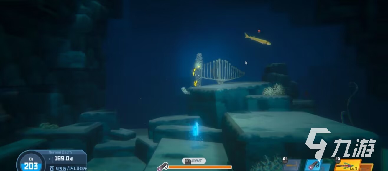 想要捕捉活的還是建議大家使用催眠槍,普通攻擊力的武器基本上對其造不成傷害,在來到蘭度深海區(qū)域之后盡可能多的探索一下周圍的武器寶箱,會有專屬的針對藍洞生物的催眠槍,催眠之后使用在使用鉤子就可以抓捕了。