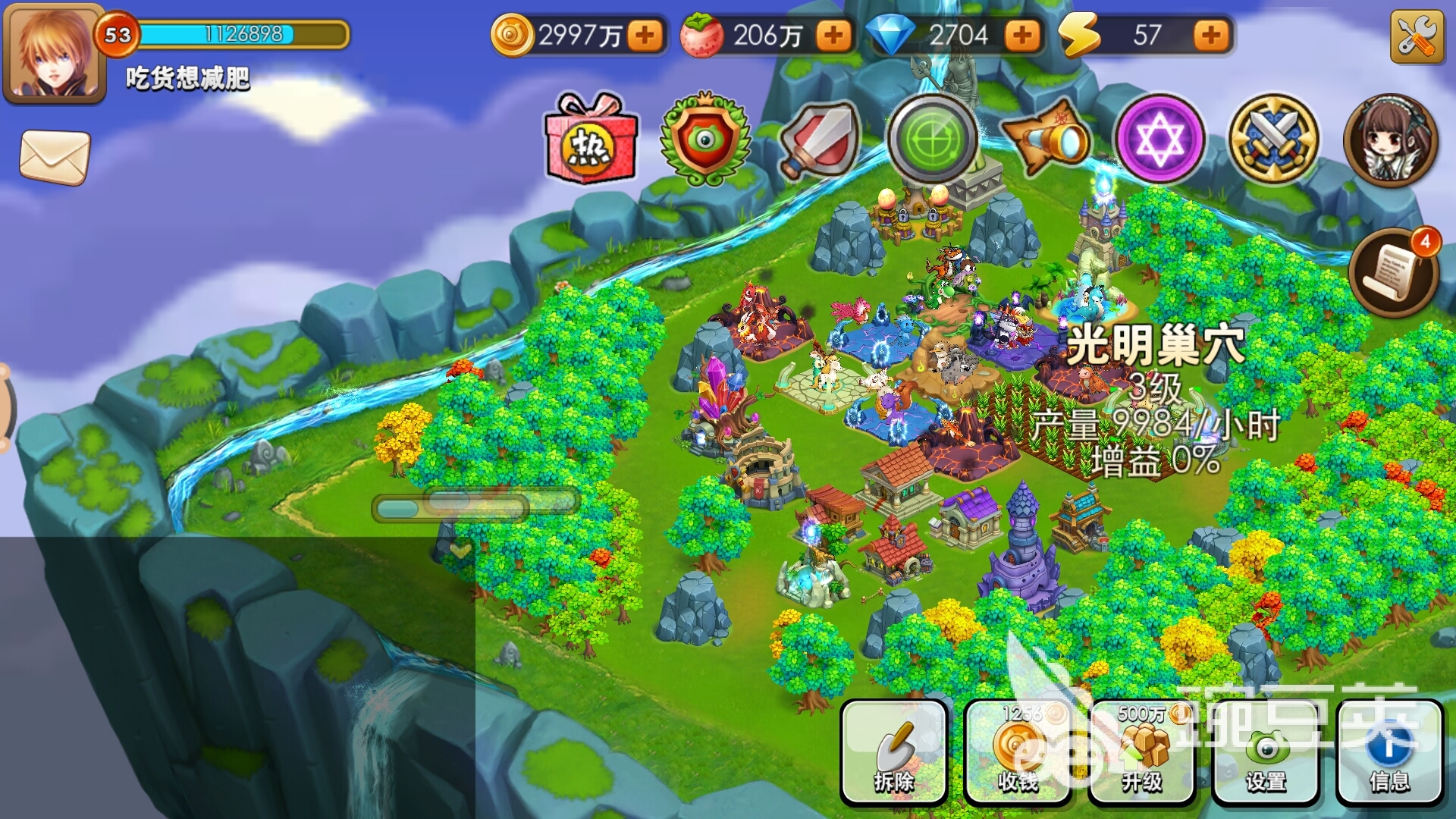當(dāng)前玩家的整體等級,當(dāng)玩家整體的怪獸圖騰見到到達七級之后就可以用,就可以開啟美化島嶼的模式。美化島嶼模式開啟之后,每一個巢穴的魔晶產(chǎn)量都會成倍提升。如果玩家在游戲中獲得了圖騰的祝福,還可以使魔晶的產(chǎn)量在原基礎(chǔ)上再增加20%。