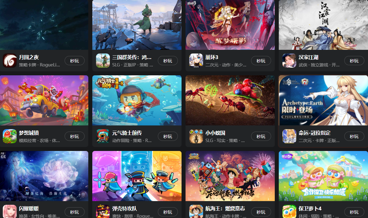 畢竟九游是一個大平臺,在電腦上首先使用起來就十分的安全放心,進入云游戲的方式也十分的簡單,只要在網頁上搜索到九游官網,就能直接點擊進去了;在頁面當中,只要大家有自己感興趣想嘗試一下的游戲,直接點擊秒玩就能開始玩該游戲了。