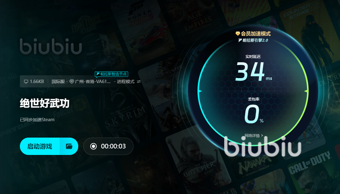 絕世好武功卡頓嚴重普遍都與網(wǎng)絡因素有關,小伙伴們可直接下載biubiu這款智能加速應用搜索游戲等接近加速,不需要糾結考慮哪條路線,平臺會毫秒級響應解決方案自動分配,享受極低延遲。