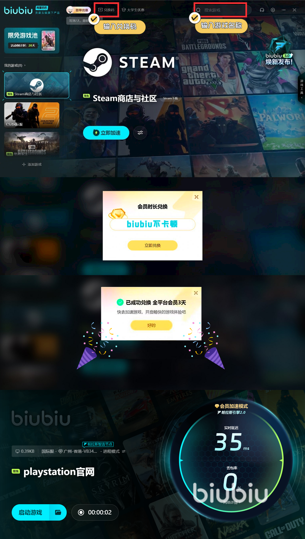 現(xiàn)在biubiu還有先享后買的福利活動(dòng),新用戶可以直接試用3小時(shí),新老用戶可以通過“biubiu不卡頓”兌換碼來換取3天全平臺(tái)會(huì)員。學(xué)生黨更是可以在完成學(xué)信網(wǎng)身份認(rèn)證后得到充值折扣。