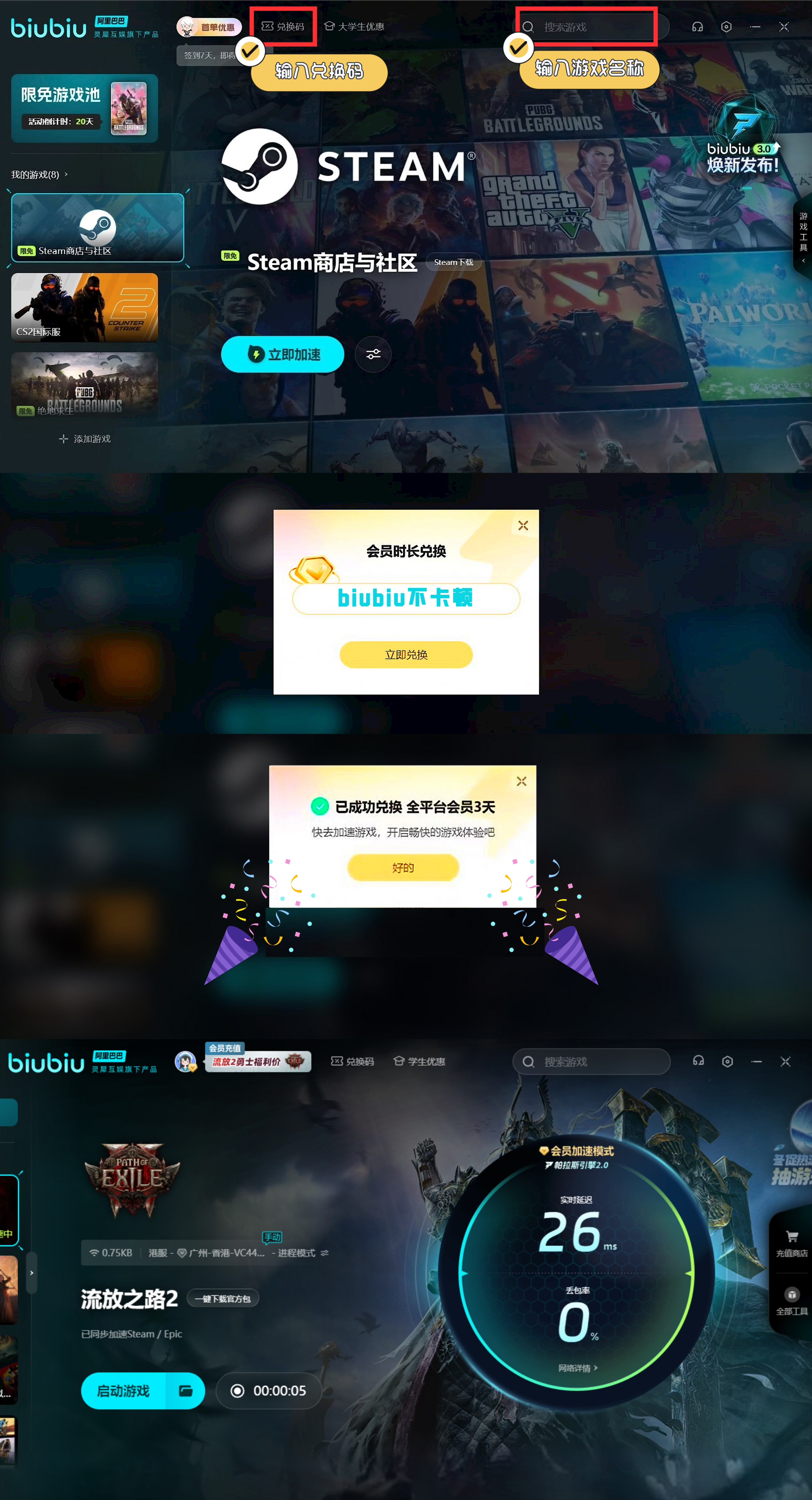 不過刷怪途中突然卡住,也會讓你的努力白費。建議使用biubiu,加速后刷怪速度更快。新用戶的話可領(lǐng)取三個小時的免費加速,此外新老用戶鍵入【biubiu不卡頓】,方能額外獲得三天免費加速。