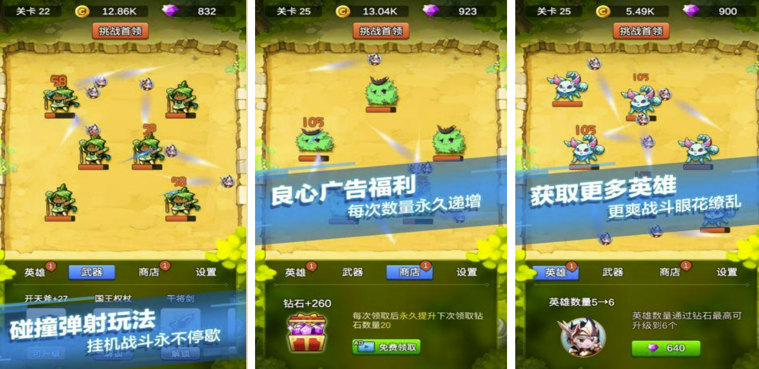 這是一款刷刷刷類型的游戲,更有掛機的玩法讓玩家輕松體驗,不需要任何的操作就可以得到豐厚的獎勵,每日的簽到福利,關(guān)卡里邊的小彩蛋,都是給玩家準(zhǔn)備的小驚喜,快去迎接專屬于你的快樂吧。
