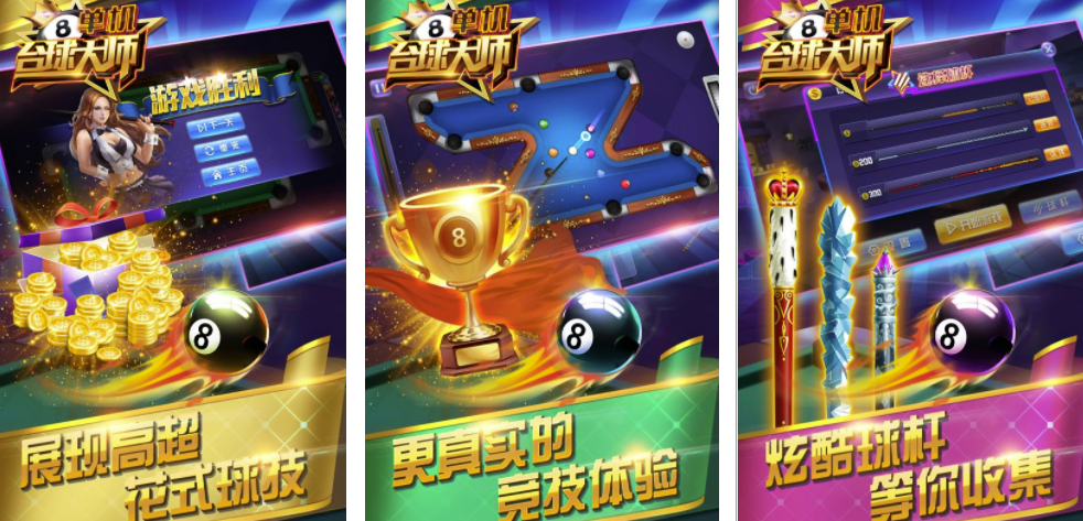 這是一款免費的3d臺球游戲,真實的物理引擎,逼真的圖像跟聲效,給玩家?guī)韛r臺球的真實體驗感。發(fā)揮自己尖銳的球技,一桿清臺。