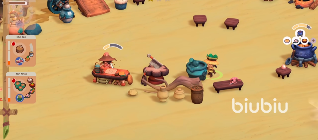 玩家們在卡雅島上經(jīng)營者一個(gè)流動(dòng)餐車,給過往的客人提供美味佳肴,可與好朋友一起,一人扮演廚師的角色在家制作美食,一人扮演獵人外出狩獵野獸,收集新鮮的食材,帶回家經(jīng)過廚師的烹飪后,就可以將美食出售了,賺到錢之后能去購買各種工具,不但更加方便接下來做菜,也能當(dāng)做武器,在這個(gè)荒野進(jìn)行戰(zhàn)斗;覺得做飯累了,還能外出組隊(duì)冒險(xiǎn),探索島嶼,甚至是結(jié)交NPC,學(xué)習(xí)新的烹飪方式,玩法非常的有趣。
