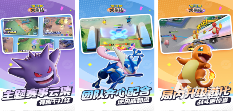 《寶可夢(mèng)大集結(jié)》這款游戲以競(jìng)技為核心玩法,同時(shí)又加入了寶可夢(mèng)的進(jìn)化和策略等多種玩法,你需要操縱寶可夢(mèng)參與各種pvp戰(zhàn)斗。游戲與傳統(tǒng)的moba推塔玩法不同,以得分為最終目標(biāo),率先到達(dá)賽點(diǎn)的團(tuán)隊(duì)計(jì)算勝利。手游采用的是3d卡通模式,寶可夢(mèng)和場(chǎng)景的色彩也相當(dāng)飽和,很符合原著。