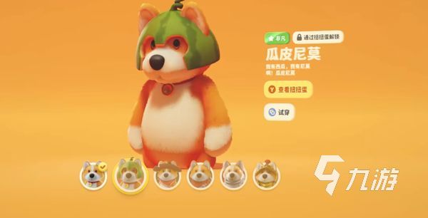 除了蛋黃這款皮膚之外,它還有很多的外觀可以體驗哦,就比如哈皮,它是一個三色柯基,頭頂和胳膊連接的位置,毛色為黑色的,主要獲取方法是通過扭扭蛋來解鎖,瓜皮就是原皮頭上套了一個西瓜皮,顯得更加俏皮可愛了,獲取方法和上一個皮膚一樣,都是通過扭扭蛋獲取的。