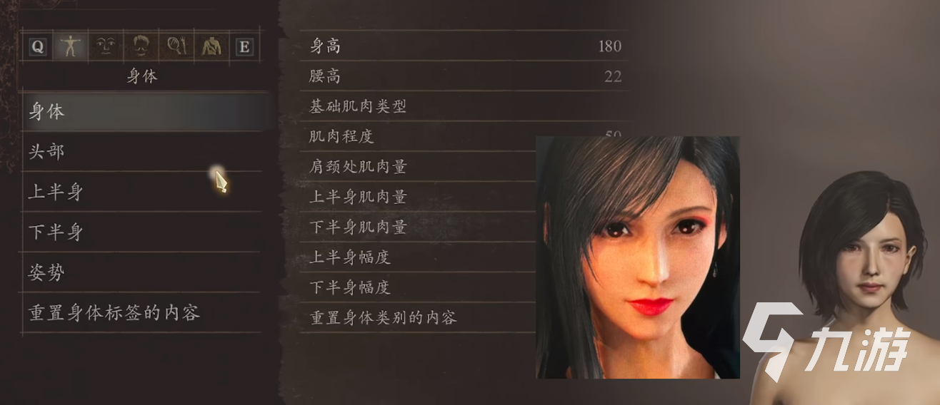 首先來(lái)編輯一下她的身體,身高可調(diào)整至180,然后腰高為22,這樣更加窈窕。肌肉類型為29,程度則為50。然后其他部位肌肉量分別為50、-20、24、30。接著就是頭部數(shù)值,可將尺寸調(diào)整至9,長(zhǎng)寬厚則是24、-20、-28,臉部位置則是30。這樣整個(gè)臉部就會(huì)看上去十分自然,沒(méi)有一點(diǎn)異樣,還可讓你細(xì)細(xì)欣賞,若是喜歡微胖類型的蒂法的話,也可以調(diào)節(jié)一下臉部厚度以及寬度。