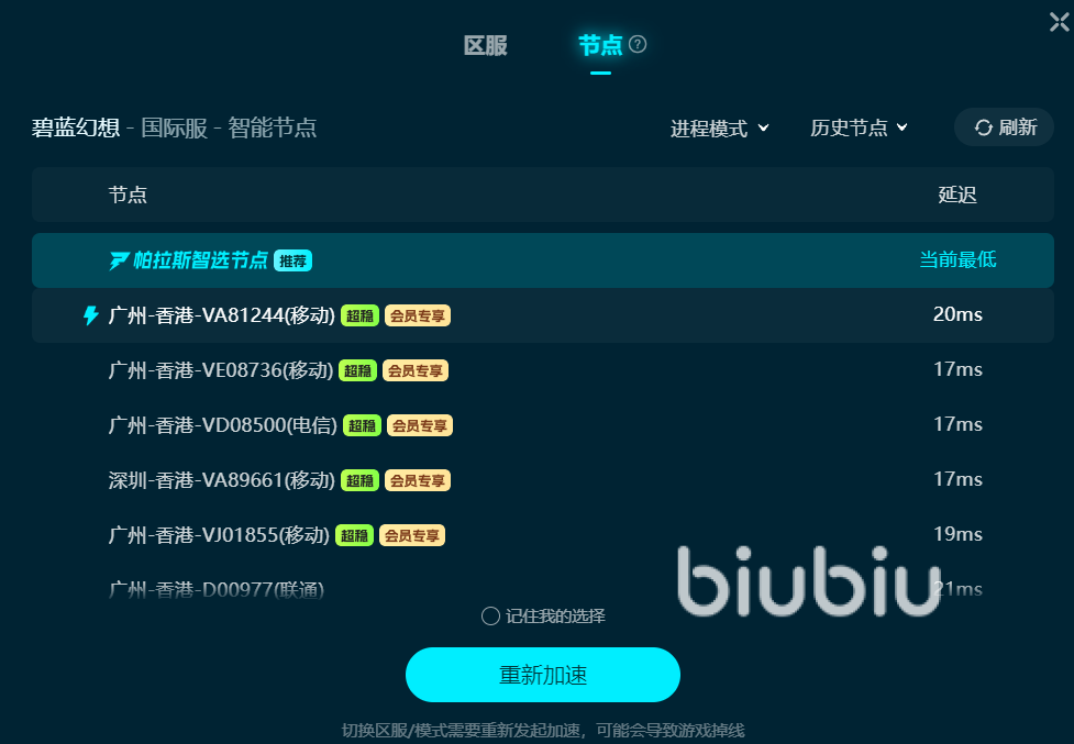 biubiu擁有專門的海外專線,通過電競級的專線連接,能夠快速、穩(wěn)定地連接到各種海外服務(wù)器。這樣不僅能夠避免登陸失敗,還能在連接后保持穩(wěn)定加速,無需擔(dān)心掉線或卡頓。低延遲的加速效果,讓你在激烈的聯(lián)機副本挑戰(zhàn)和大規(guī)模Boss戰(zhàn)斗中更加穩(wěn)定。