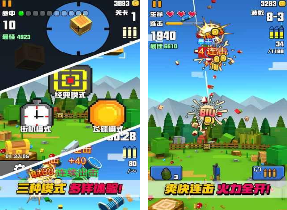 利用武器來(lái)不斷的擊落敵人飛行物,通過(guò)傷害的評(píng)定來(lái)奪取高分,游戲分為多種不同的模式,并且武器的選擇種類也十分豐富,給玩家?guī)?lái)一個(gè)暢快體驗(yàn)。