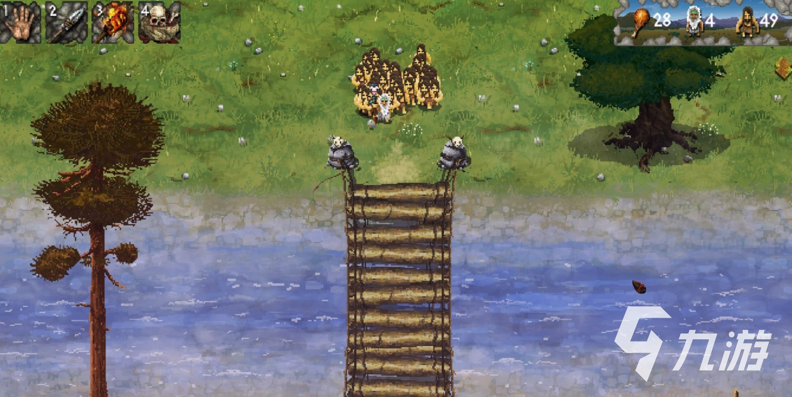 在遷移途中更是要持續(xù)去采集食物、獵殺動物,并合理分配資源維持人口增長,當(dāng)食物匱乏時甚至可能犧牲部分成員以確保整體存續(xù),每次游戲的路線均為動態(tài)生成,增加了超多的不確定性,玩家得實時適應(yīng)地形變化,遇到湖泊或河流時需搭建橋梁調(diào)整站位,面對猛獸則要運用技能捕獵。