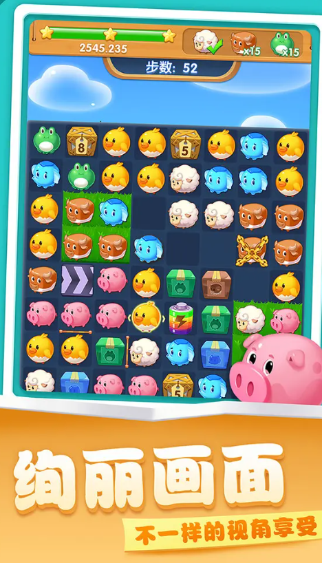游戲采用明快的田園畫風(fēng),青翠欲滴的菜園與憨態(tài)可掬的動物構(gòu)建出令人愉悅的視覺場景。隨著關(guān)卡推進(jìn),玩家將面臨多變的地形障礙與趣味性十足的連鎖反應(yīng)挑戰(zhàn),需要靈活運用智慧才能突破重圍。精心設(shè)計的增益系統(tǒng)包含多種特效道具,適時使用可以觸發(fā)絢麗的組合效果,讓簡單的消除操作也能產(chǎn)生令人驚喜的連鎖反應(yīng)。