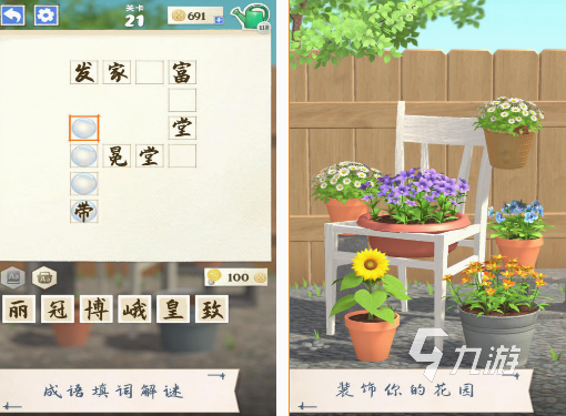在這款游戲中的玩家,將會(huì)擁有一個(gè)漂亮的花園,為了使奶奶別墅里面花園更好地生長,你需要在成語接龍的玩法當(dāng)中,不斷的闖關(guān)成功,獲得相應(yīng)的獎(jiǎng)勵(lì)。因?yàn)樵诨ǘ渥匀簧L的過程中,是離不開水的,為了獲得水源,必須要你按照水滴出現(xiàn)的順序,正確的完成成語的填寫,只有全部填完以后你就能順利通關(guān),獲得相應(yīng)的金幣。