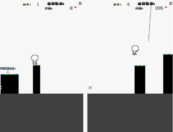 整體設置特別的簡約,還以黑白的風格為主,玩家需要控制著里面簡單的角色,在高低不同,還有一定間距的方塊當中,利用找準時機的方式完成跳躍。由于每次跳落的點高低不同,所以玩家想要在每一個關卡當中順利地獲得分數(shù),必須要仔細的進行觀察,保證每一次都能完成上跳或者是下跳,也要有很好的力度。